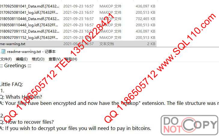 SQL数据库中毒解密恢复.MAKOP 服务器中毒解密.MAKOP .MAKOP勒索病毒解密恢复