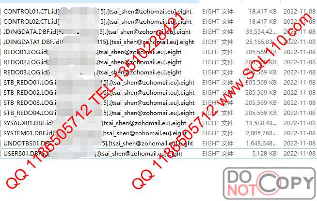 故障类型 oracle数据库服务器被.eight勒索病毒加密,所有文件被破坏,扩展名变成.eight